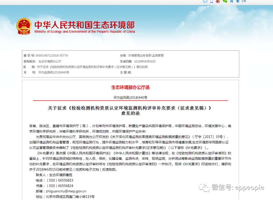 二是我部将认真落实《通知》要求,联合制定《检验检测机构资质认定 生态环境监测机构评审补充要求》,尽快印发执行,完善我国生态环境监测机构资质认定评审准则,提高生态环境监测机构的能力和水平。